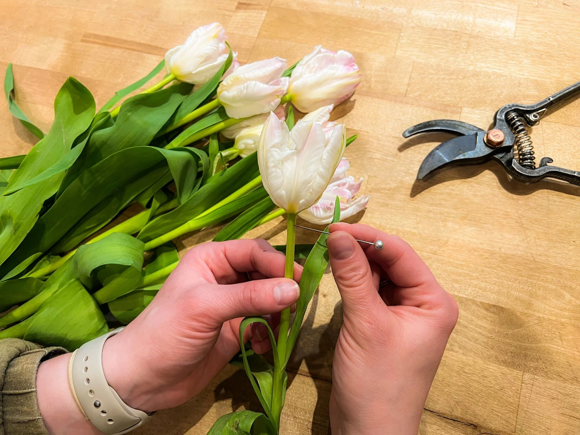 By poking or cutting a hole in the stem just below the flower head, you facilitate air release and promote better water flow throughout the entire flower, thus aiding in their ability to stand upright and last longer. When tulips are cut from the bulb, their stems may contain air bubbles or pockets trapped within the hollow structure. These air pockets can impede the flow of water and nutrients to the upper portions of the stem and flower head, causing them to wilt prematurely. Additionally, the trapped air can create instability, causing the tulip to lean or flop over in the vase. By carefully puncturing or cutting a small hole in the stem, ideally just below the base of the flower head, you create an avenue for the trapped air to escape. This allows for better water uptake and distribution throughout the entire stem and flower, ensuring that each part of the tulip receives the necessary hydration and nutrients to remain vibrant and stand taller, longer.
